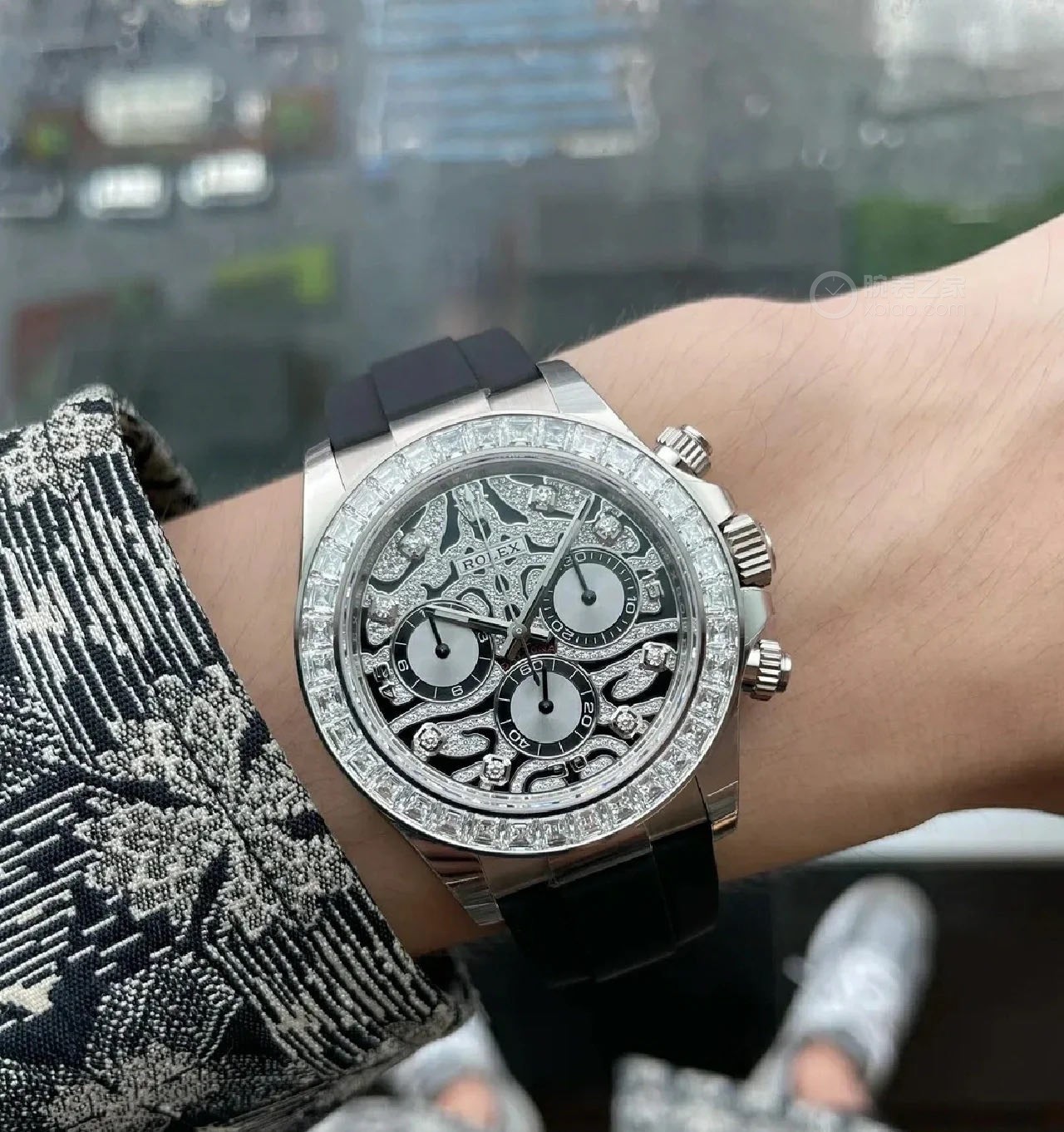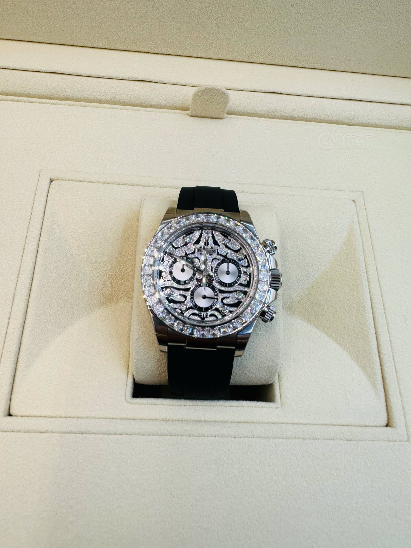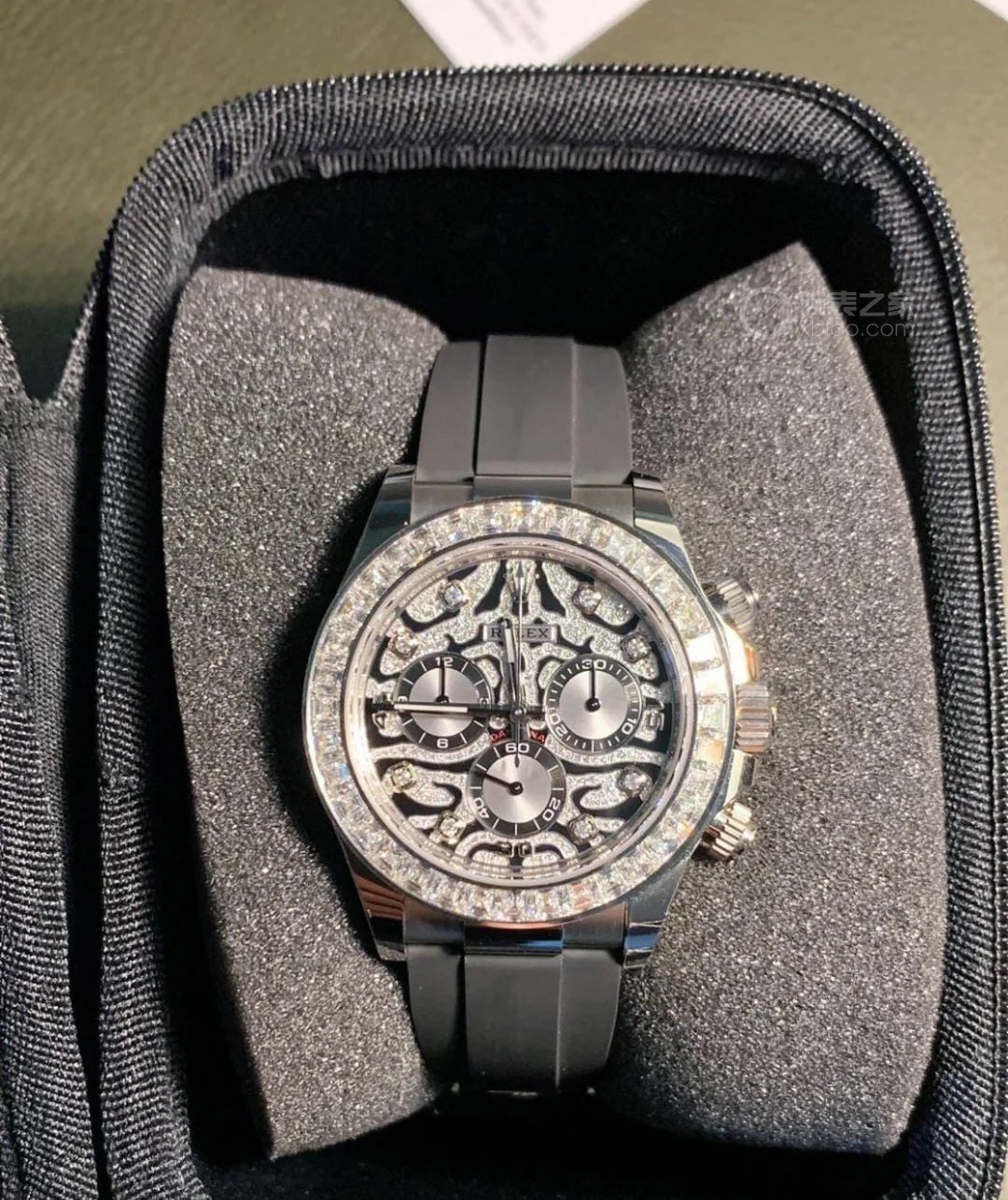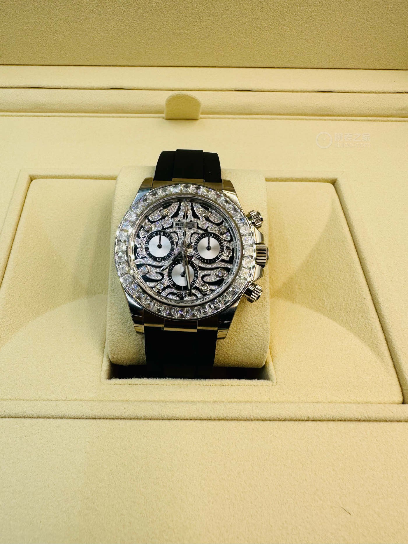 A Rolex Daytona with diamonds is not something new but one with a dial like the 116588TBR sure is! The black-lacquered dial has an applied 18k yellow-gold and diamond-set, wavy structure on the surface, which can remind you of a tiger's fur.
