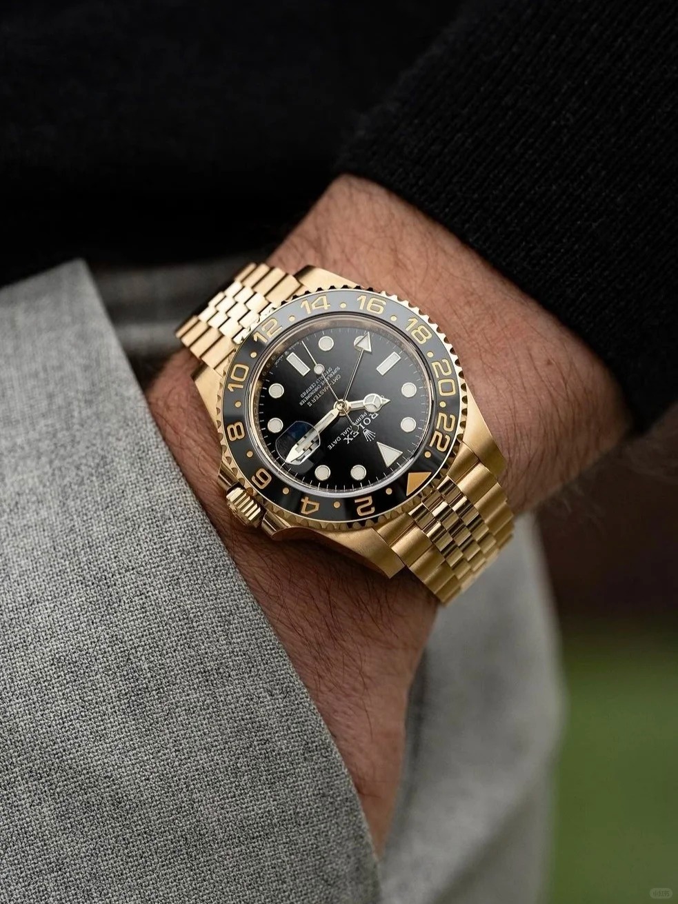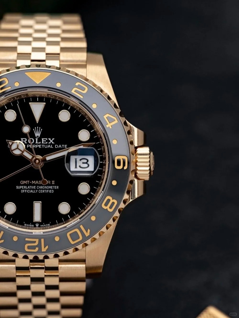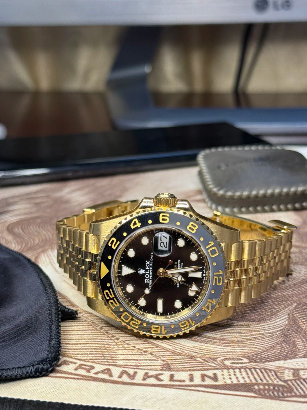 The Oyster Perpetual GMT-Master II in 18K yellow gold with a black dial and Jubilee bracelet. -m126718grnr-0001 40mm