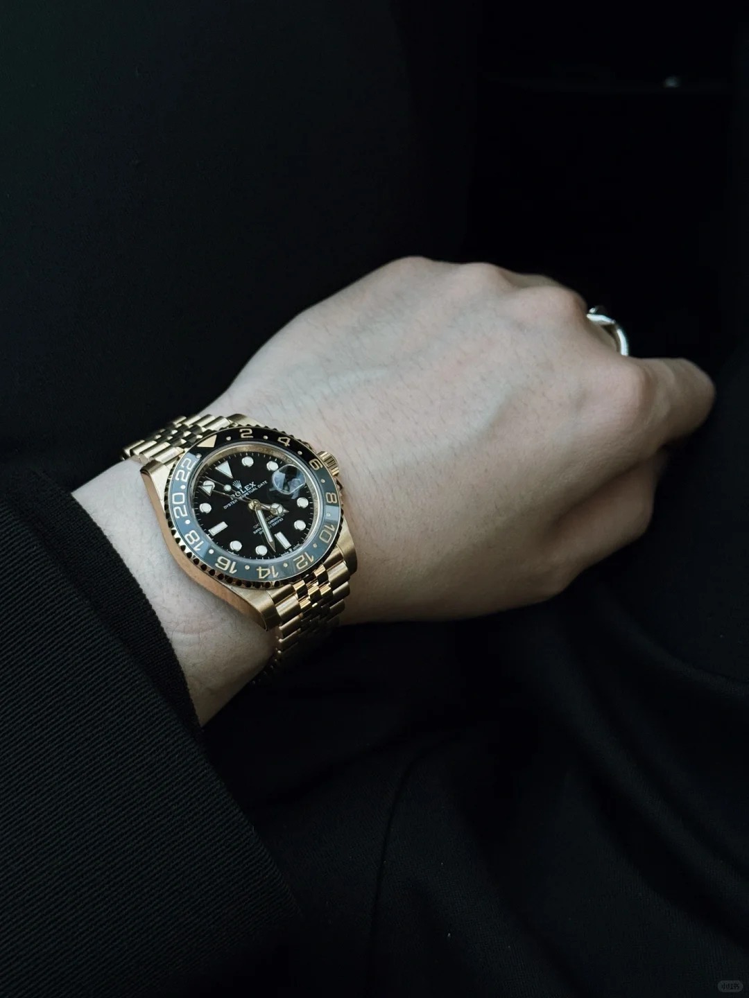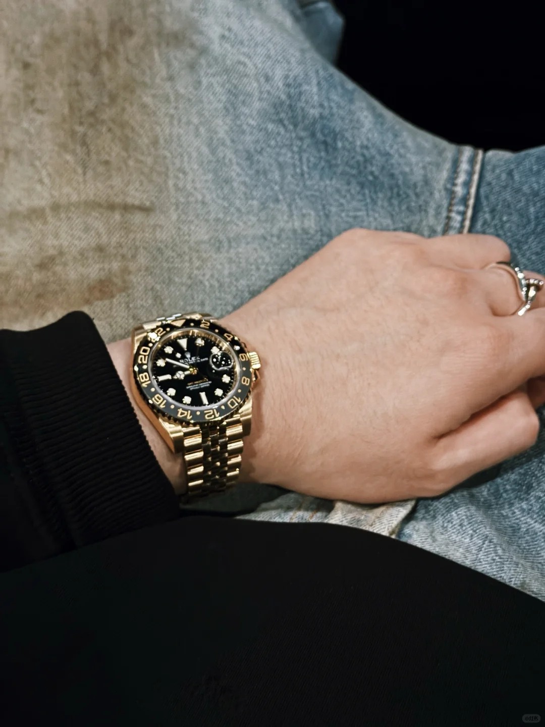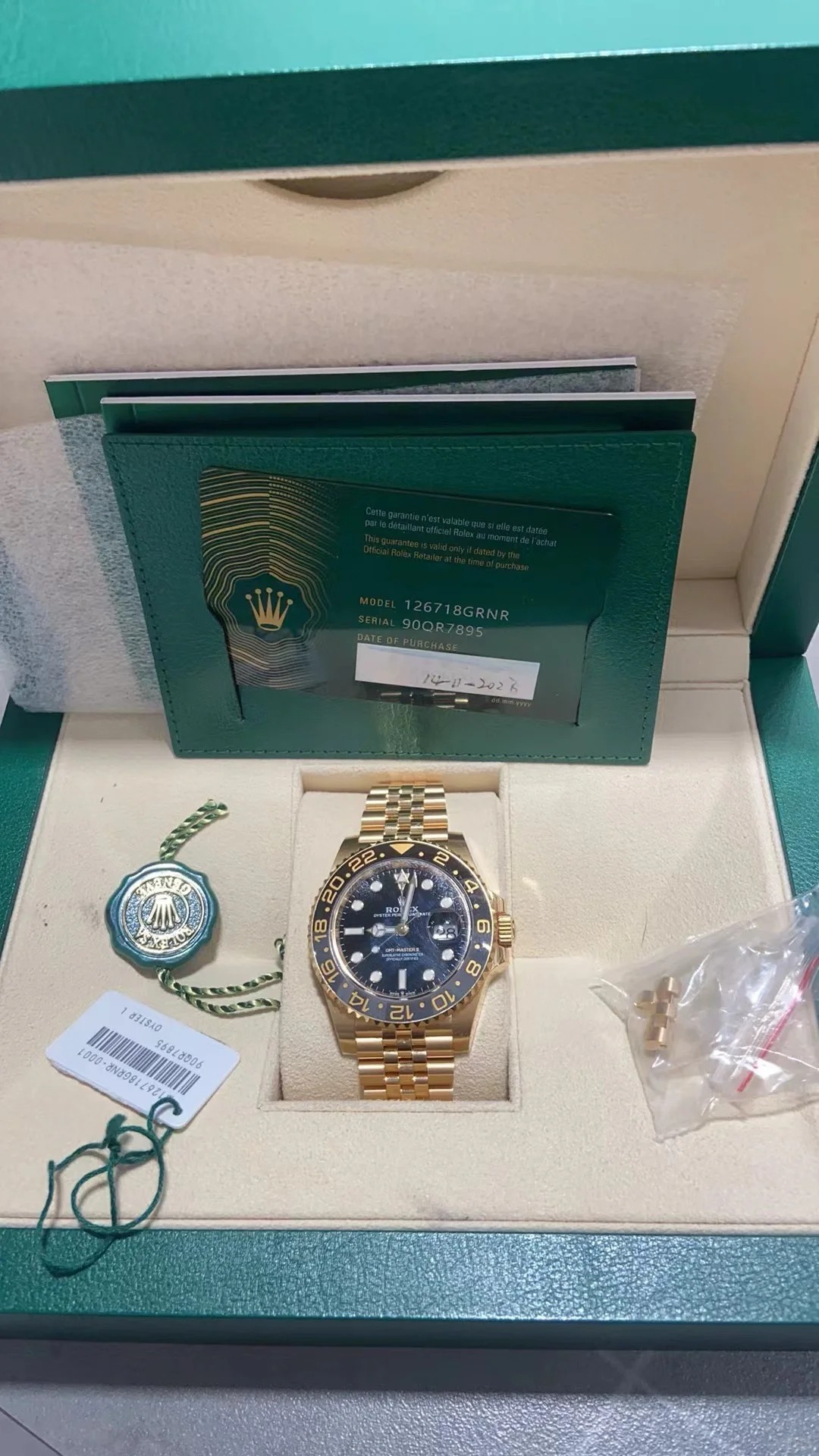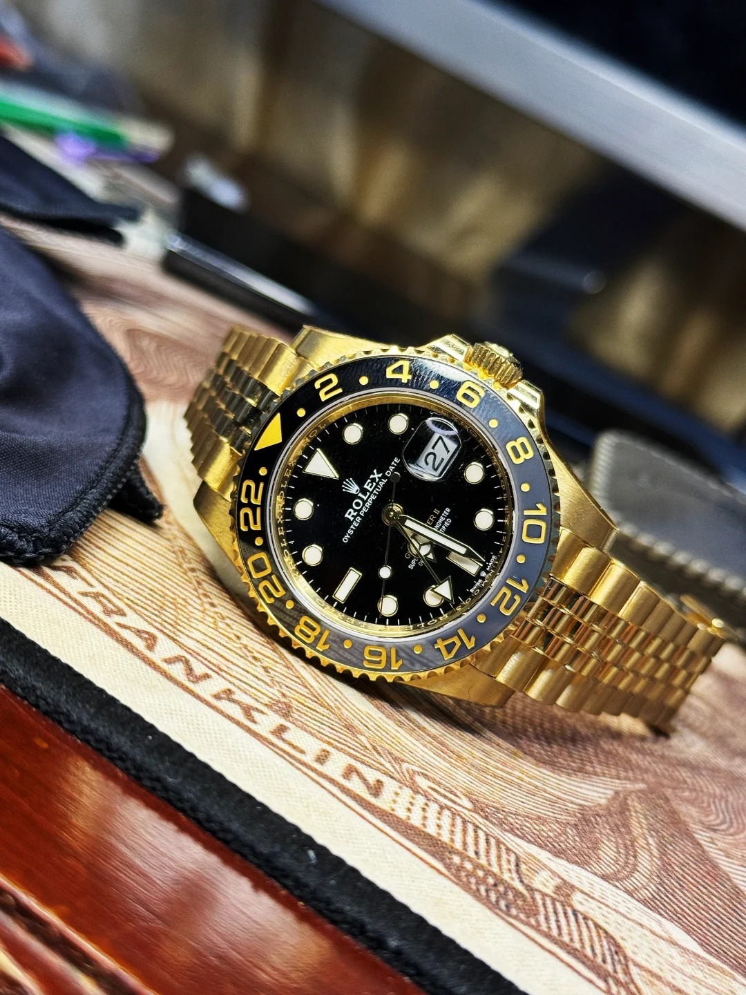 The Oyster Perpetual GMT-Master II in 18K yellow gold with a black dial and Jubilee bracelet. -m126718grnr-0001 40mm