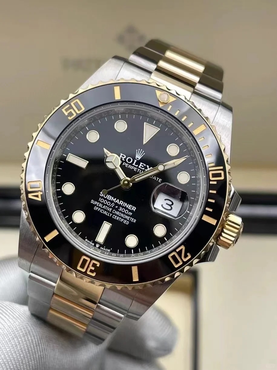 • 2025 super clone The Oyster Perpetual Submariner Date in yellow gold and Oystersteel with a black Cerachrom insert in ceramic, a black dial and oversized luminescent hour markers. -m126613ln-0002 41mm